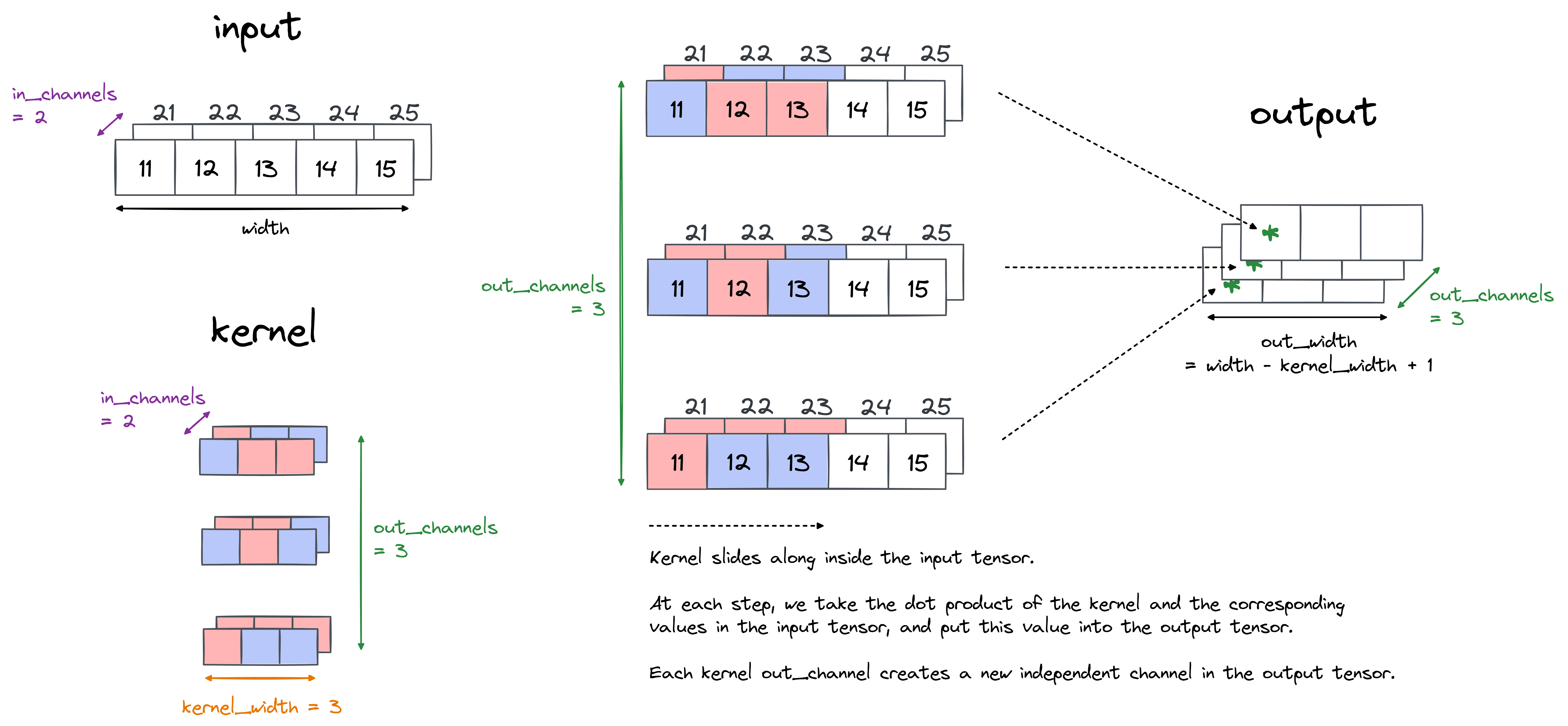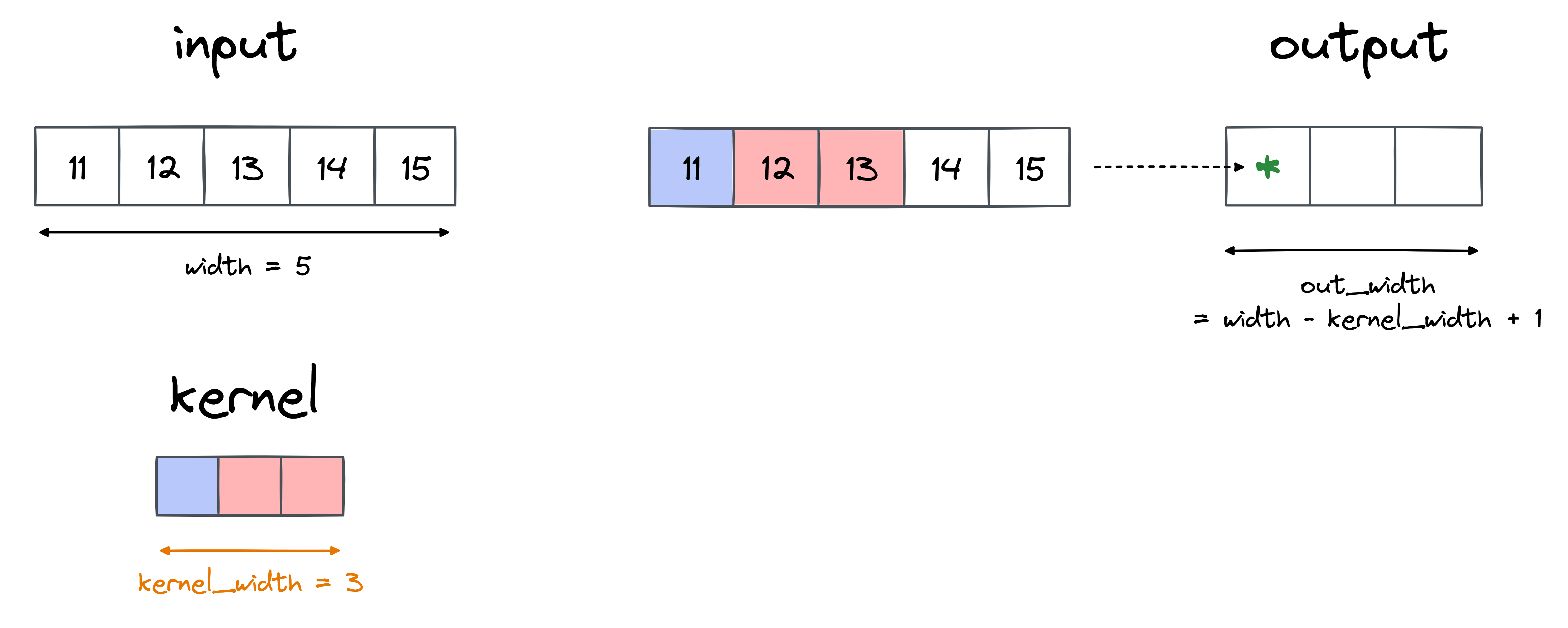 Remember, you'll need a new formula for output_width (see formula in the [documentation](https://pytorch.org/docs/stable/generated/torch.nn.Conv1d.html) for help with this, or see if you can derive it without help).