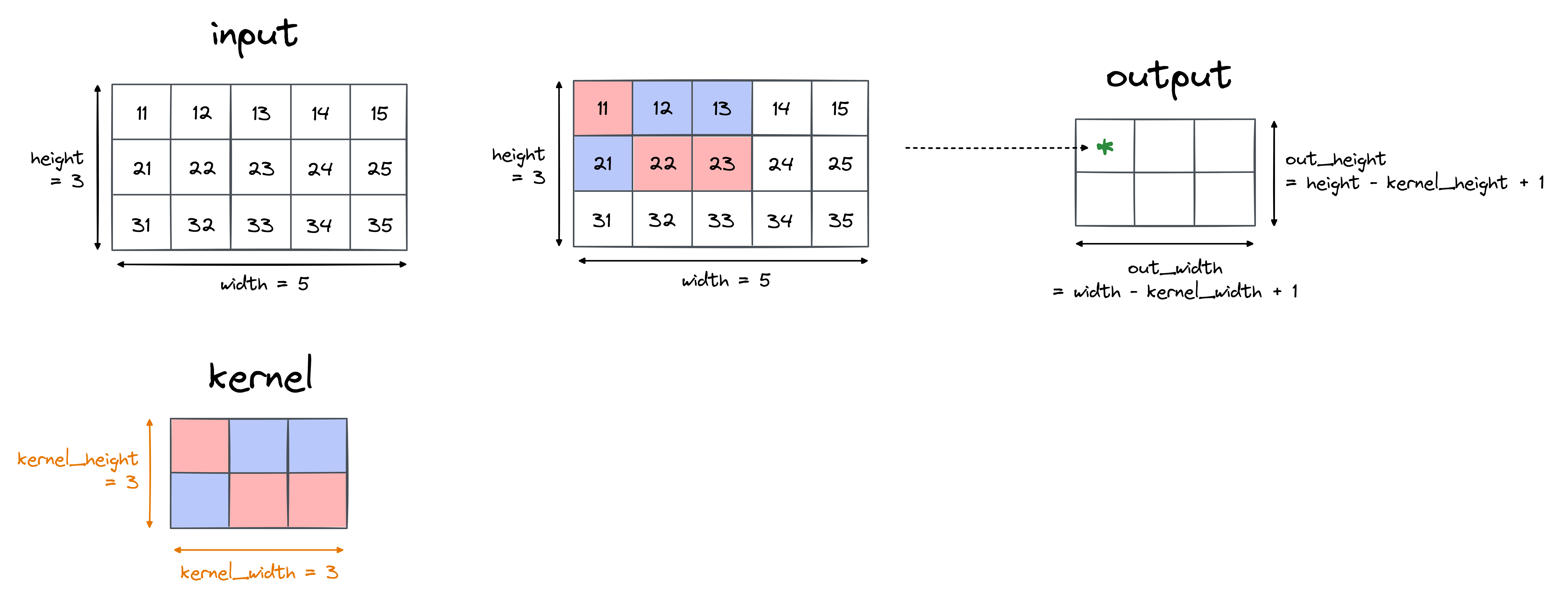 # Note, we assume padding is zero in the formula here, because we're working with input which