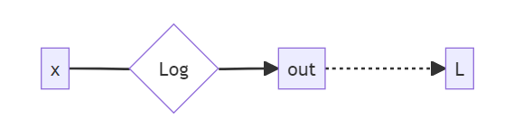 (Note - technically, $\frac{d(\text{out})}{dx}$ is a tensor containing the derivatives of each element of $\text{out}$ with respect to each element of $x$, and we should matrix multiply when we use the chain rule. However, since $\text{out} = \log x$ is an elementwise function of $x$, our application of the chain rule here will also be an elementwise multiplication: $\frac{dL}{dx_{ij}} = \frac{dL}{d(\text{out}_{ij})} \cdot \frac{d(\text{out}_{ij})}{dx_{ij}}$. When we get to things like matrix multiplication later, we'll have to be a bit more careful!)