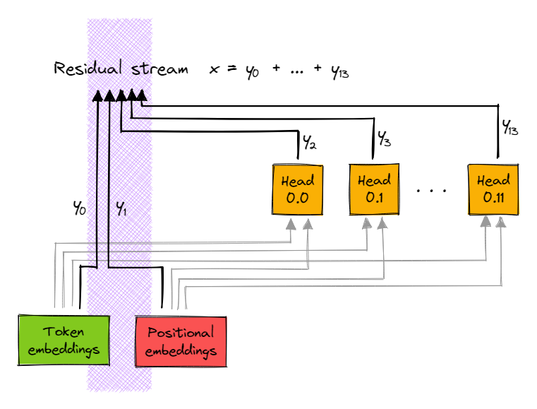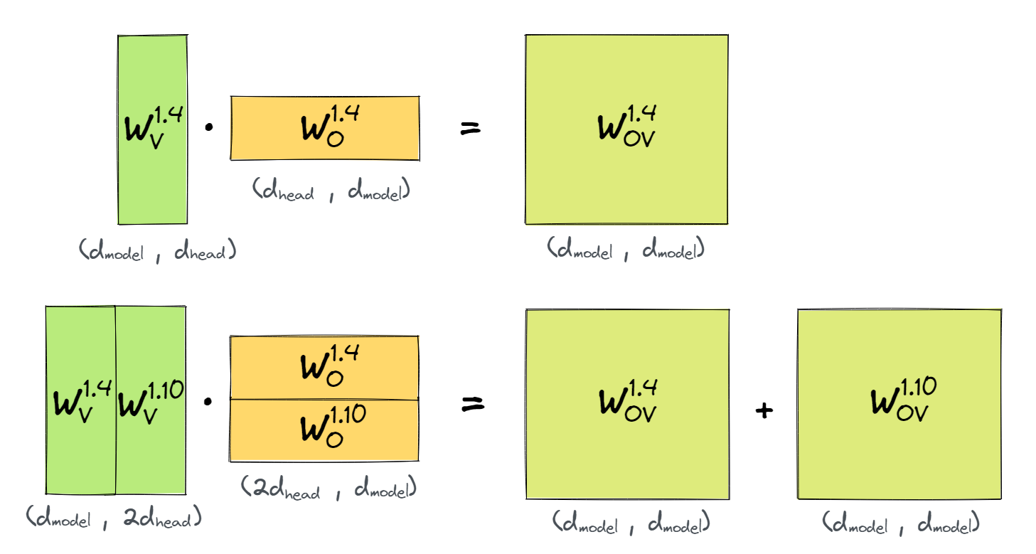 Note that the order of these matrices are slightly different from the Mathematical Frameworks paper - this is a consequence of the way TransformerLens stores its weight matrices.