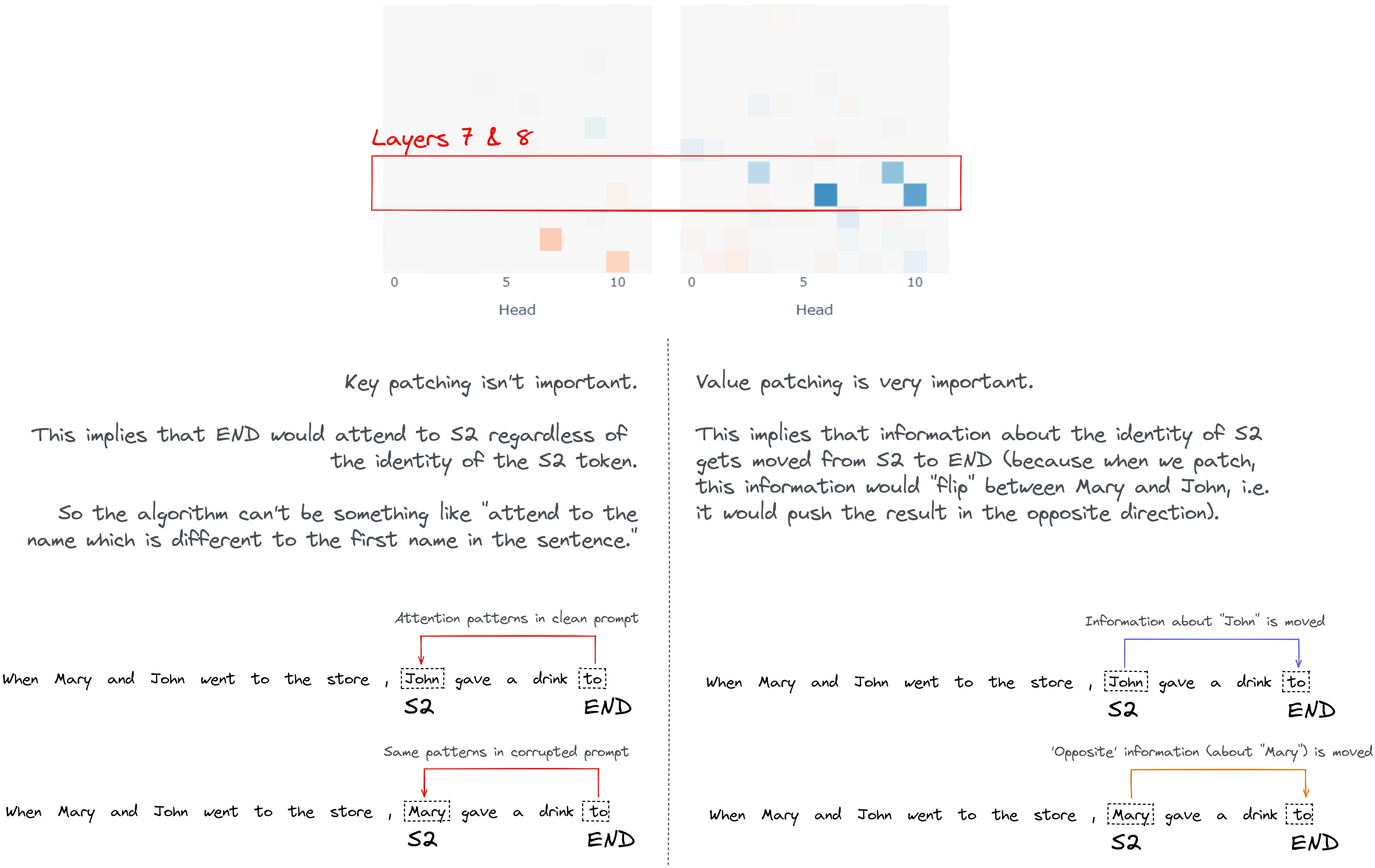 The fact that value patching is the most important thing for them suggests that the interesting computation goes into what information they move from S2 to end, rather than why end attends to S2. See the diagram below if you're confused why we can draw this inference.