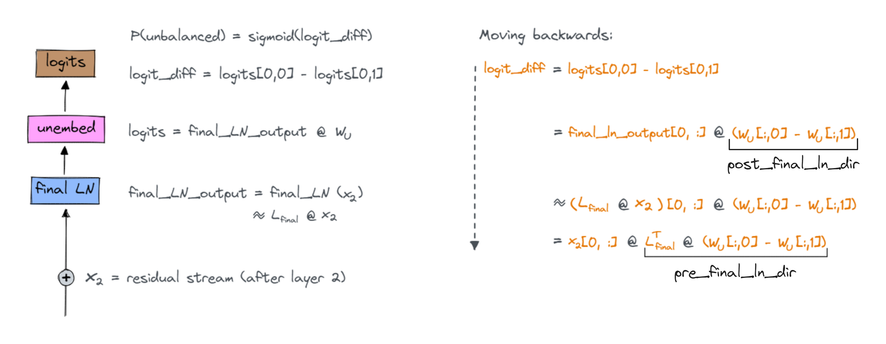 logit_diff = (final_LN_output @ W_U)[0, 0] - (final_LN_output @ W_U)[0, 1]