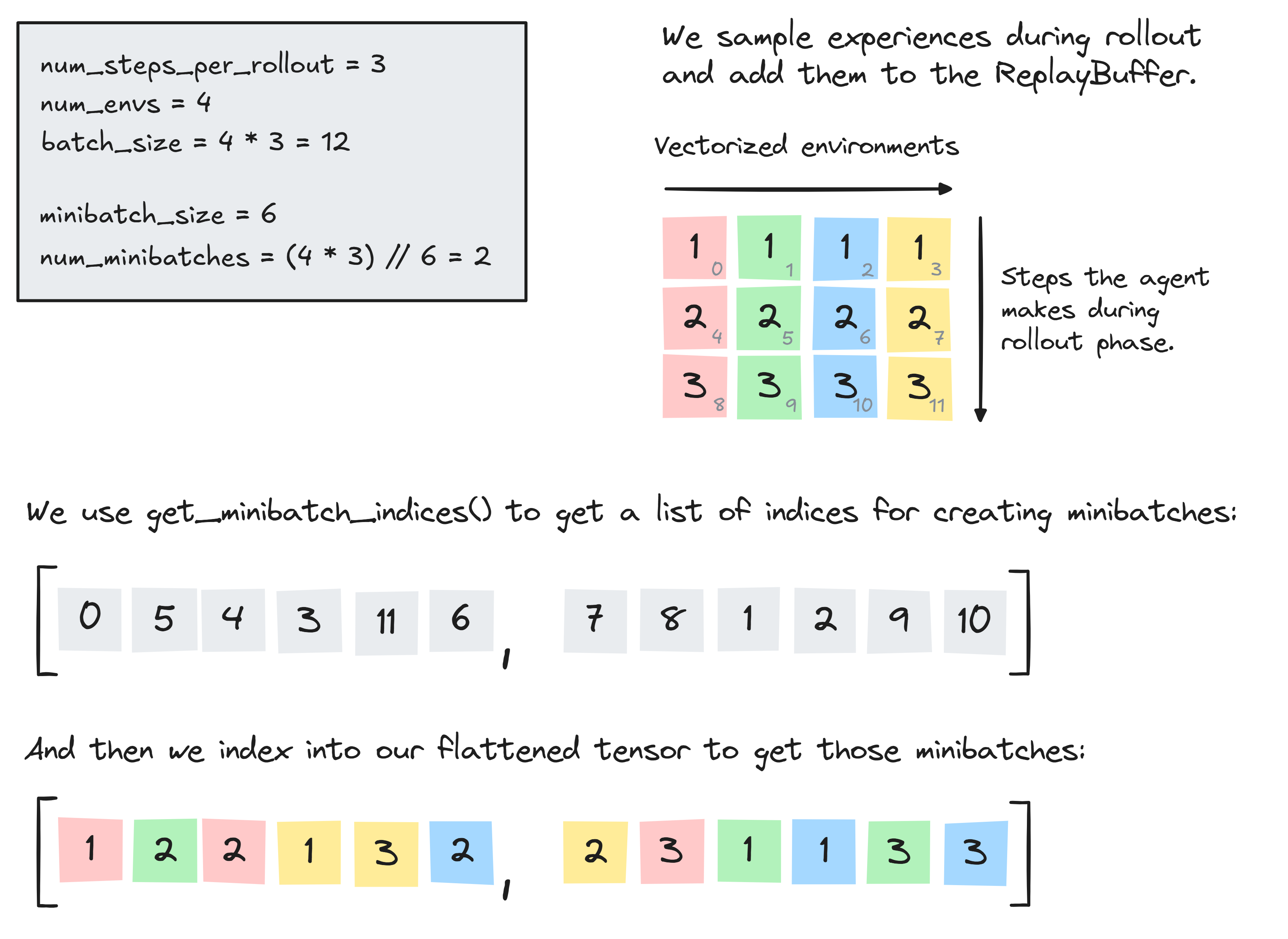 batch_size = num_steps_per_rollout * num_envs # 256