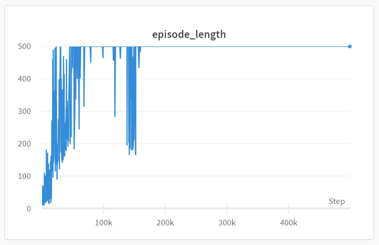 Once you've passed the tests for all 5 probe environments, you should test your model on Cartpole.