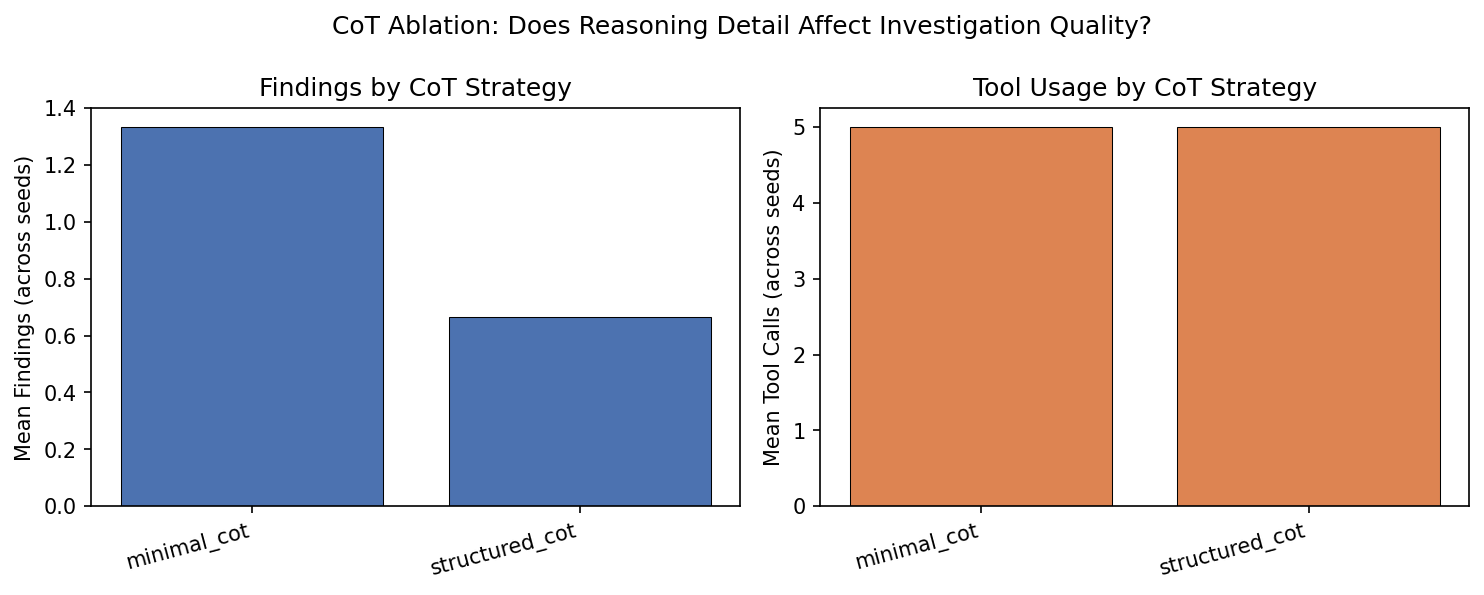 - Understand how chain-of-thought affects investigator agent performance and design CoT ablation experiments